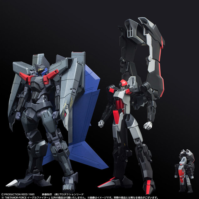 千值練玩具公司的『METAMOR-FORCE系列』繼推出「超獸機神 斷空我」和其「Real Type的配色版本」之後,今天官網又公開將推出動畫當中由“藤原 忍”所駕駛的「鷹式戰機」イーグルファイター(名稱暫譯)的立體作品,來迎接動畫30週年紀念,藤原 忍是故事中「獸戰機隊」的隊長也是本作主要角色人物,操作的鷹式戰機可變型為「斷空我」的頭部,當然也負責其總作戰的主要控制。