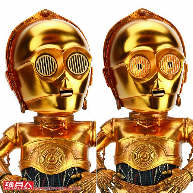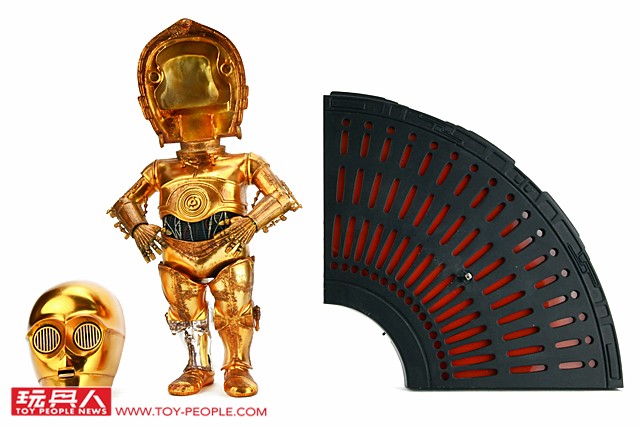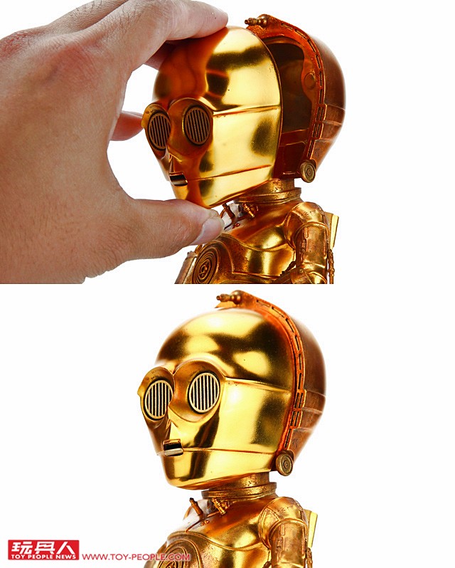 ▼ C-3PO 的雕像採用分件設計。會發光以及發出音效的臉部,與身體分開並藉由強力磁鐵來組裝。 這樣的好處是可以在不影響造型的前提下,完全隱藏發光效果的開關;使用強力磁鐵吸附也不會發生組裝不完全,讓外型出現縫隙或鬆脫的狀況。