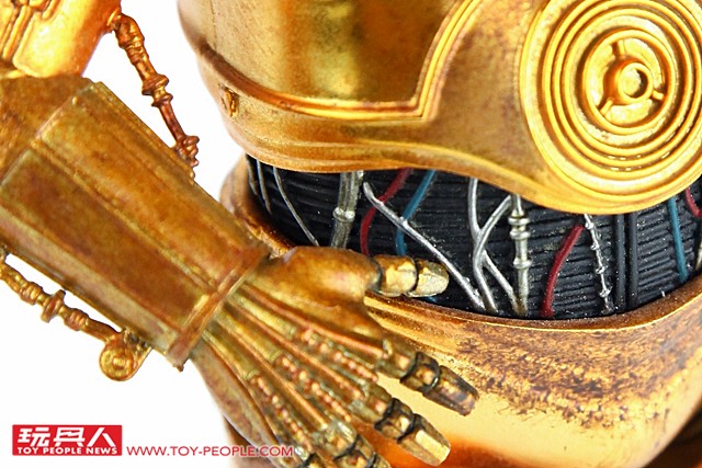 ▼ 接下來就讓我們來看看C-3PO雕像本體吧! 姿勢的呈現真的超讚,C-3P 僵直的“L”型手臂、將上半身重心向後,以及微微前凸的肚子,完全掌握了C-3PO 的姿態與神韻啊~