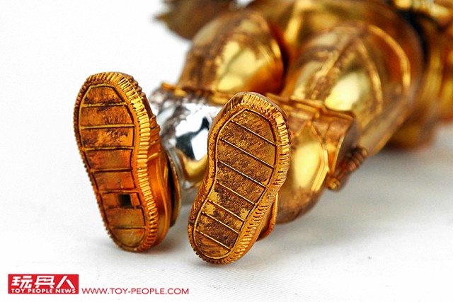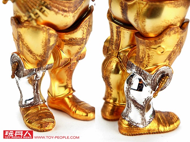 ▼ 在《星際大戰五部曲》時,C-3PO 的右腳是替換零件,所以材質、舊化效果的呈現也與一般金色的部位不一樣,這樣的設計讓C-3PO 的造型更加具有變化性。 野獸國的開發者注意到了這個特色,藉由塗裝效果呈現了材質的差異性,讓造型更加逼真。