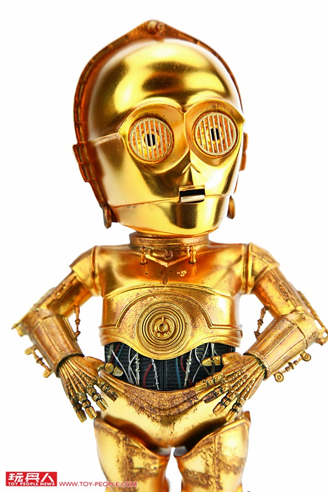 ▼ C-3PO 的外型金屬塗裝質感超棒! 金屬的效果十分逼真,就像是真的金屬打造一樣。 除此之外,造型也十分地考究,雖然是可愛的Q版造型,但是涵蓋了大量的造型細節,欣賞的時候超過癮!