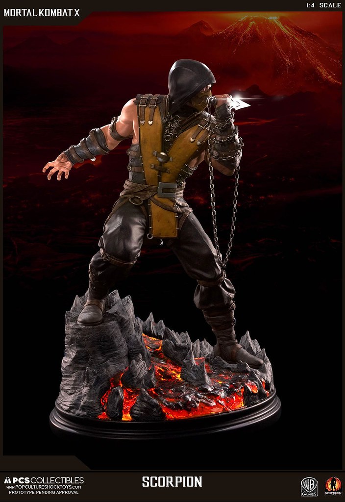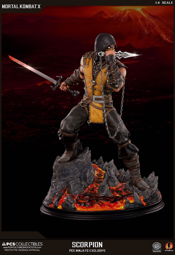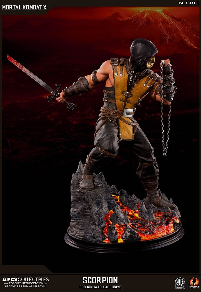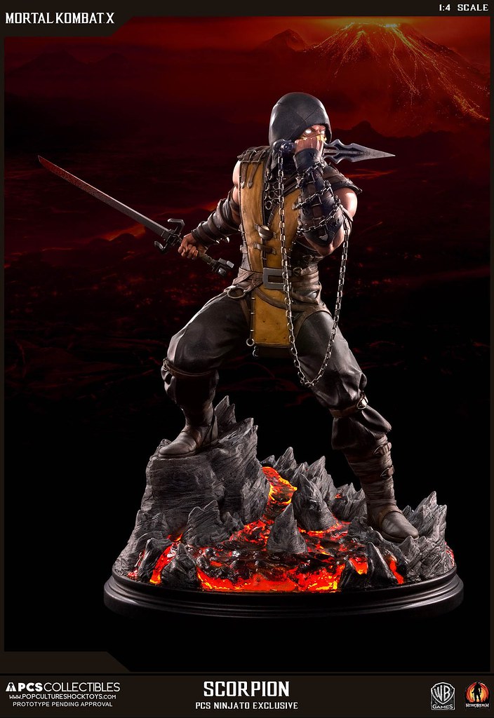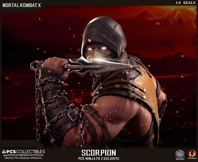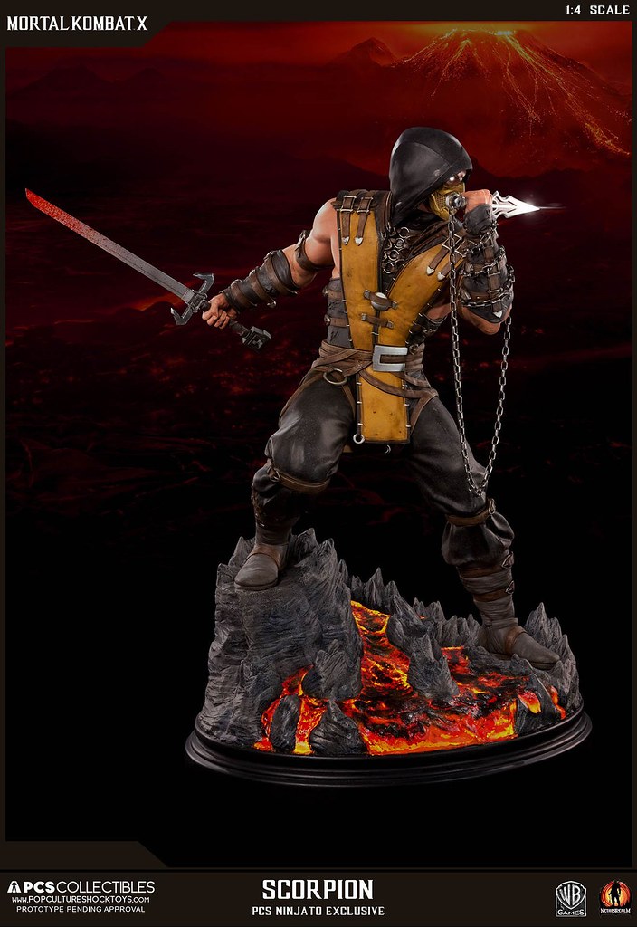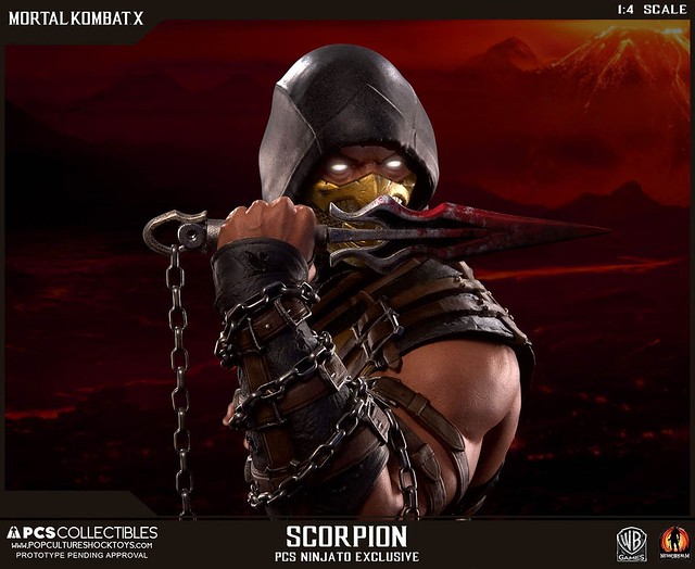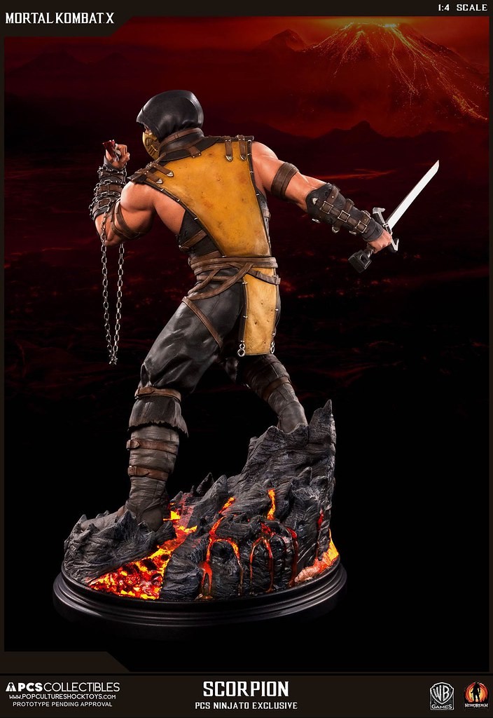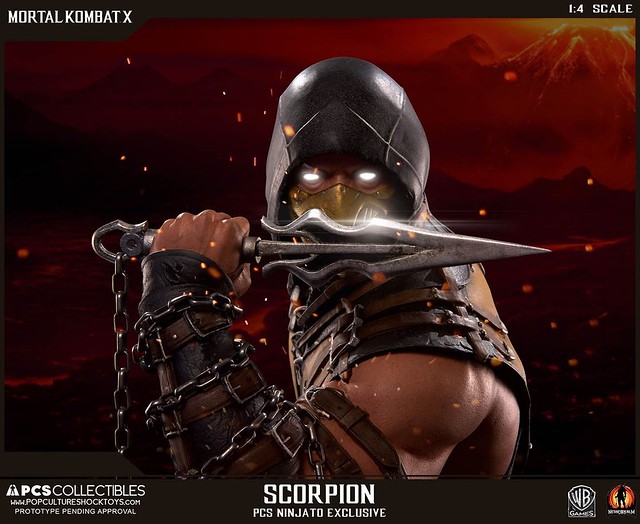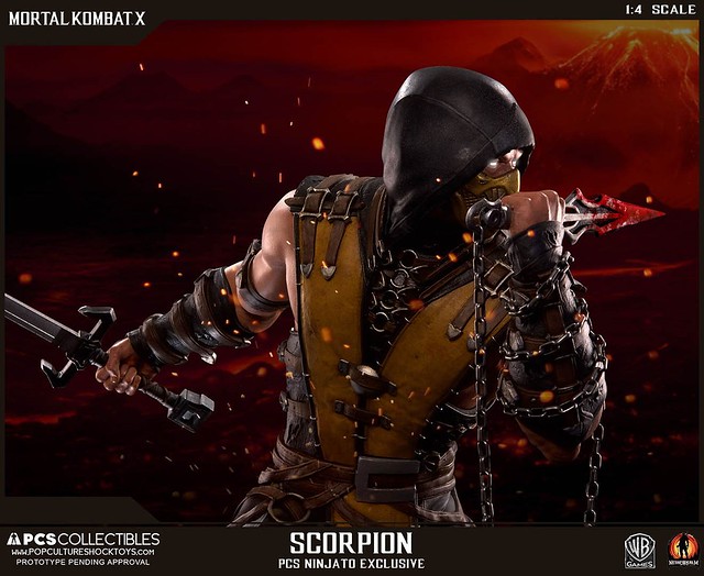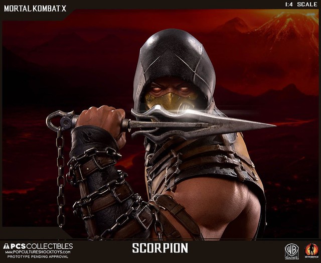 由美國玩具設計師Jerry Macaluso 所成立的Pop Culture Shock Collectibles 公司又要推出全新造型的雕像作品啦,繼推出了真人快打系列(Mortal Kombat Klassic)的「紹.可汗/紹康」(Shao Kahn)雕像作品之後,又要推出一個經典角色「魔蠍」(Scorpion)1/4 比例全身雕像的作品啦!