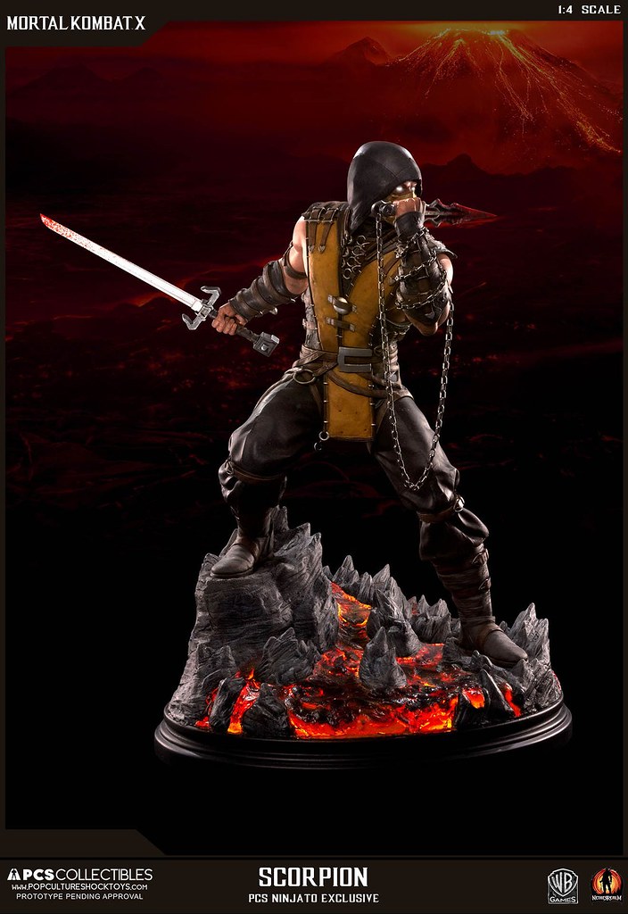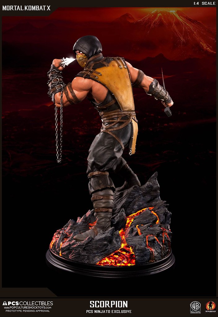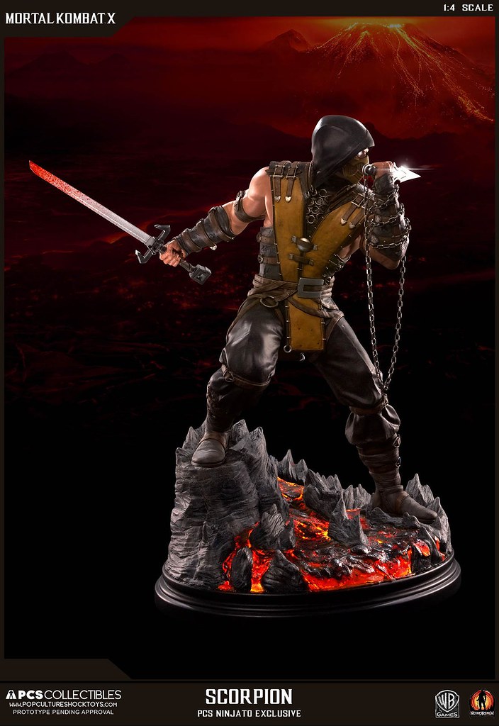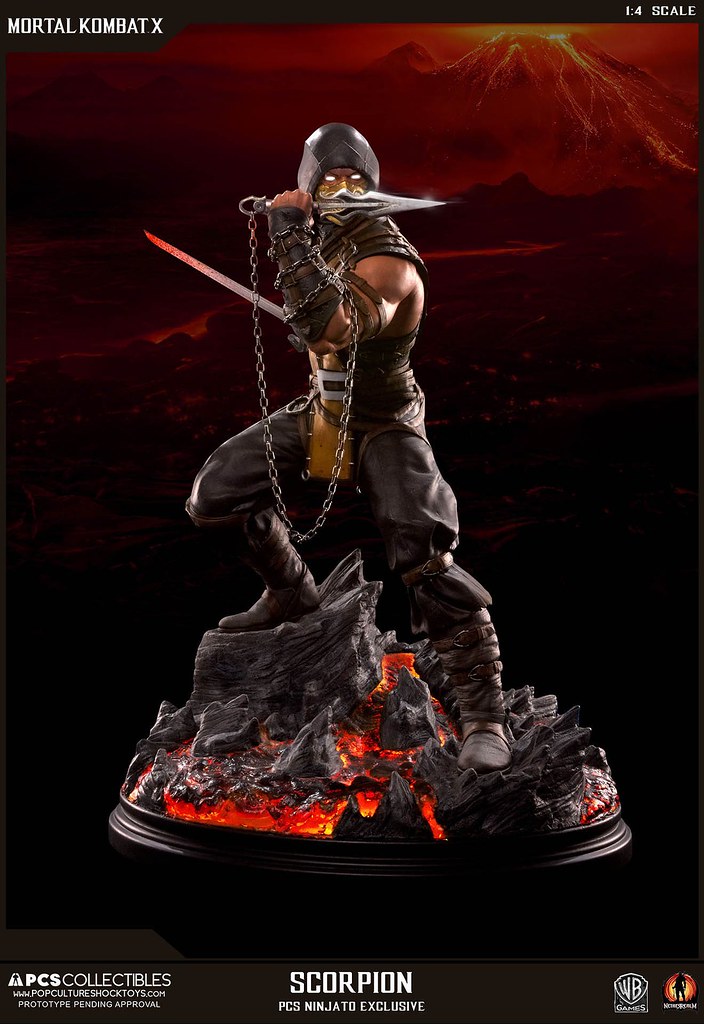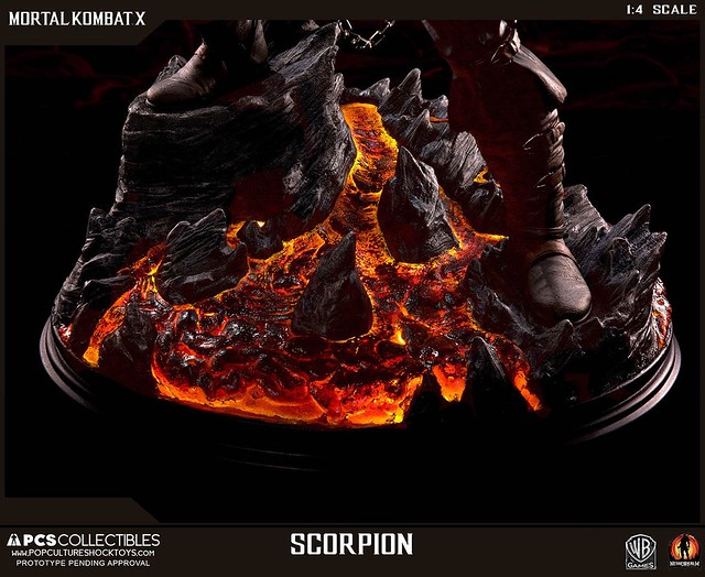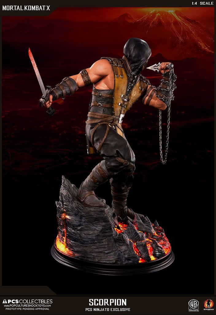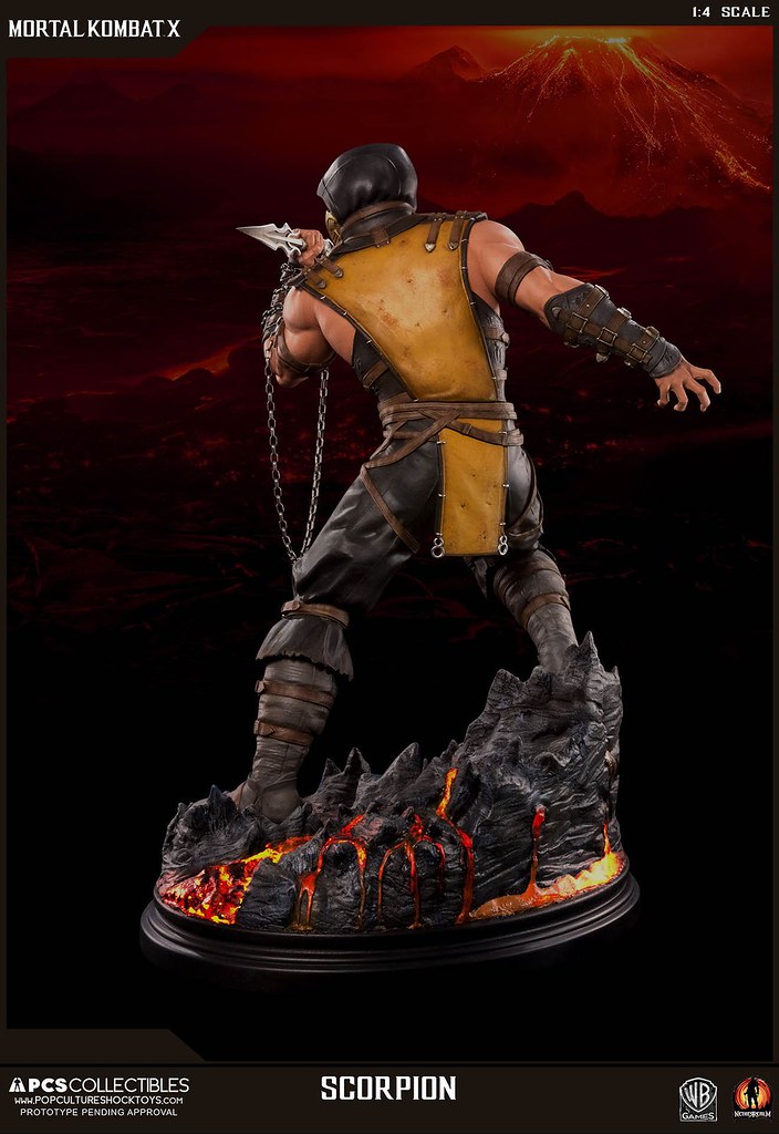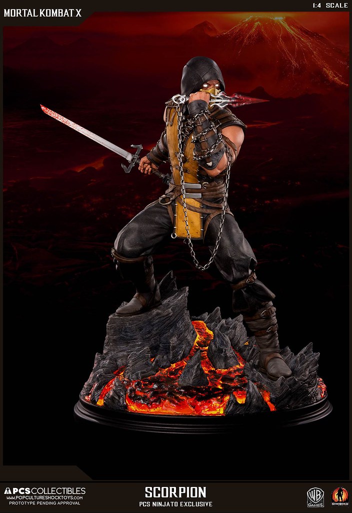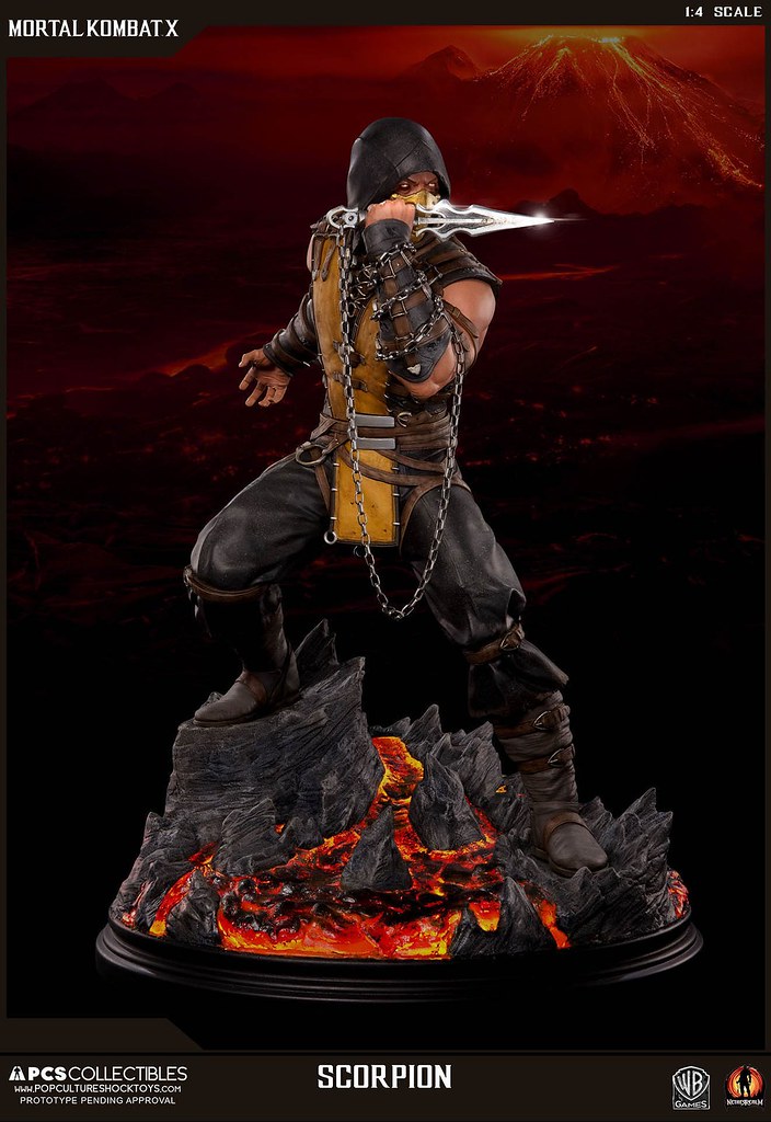 由美國玩具設計師Jerry Macaluso 所成立的Pop Culture Shock Collectibles 公司又要推出全新造型的雕像作品啦,繼推出了真人快打系列(Mortal Kombat Klassic)的「紹.可汗/紹康」(Shao Kahn)雕像作品之後,又要推出一個經典角色「魔蠍」(Scorpion)1/4 比例全身雕像的作品啦!