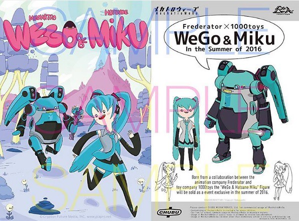 「Frederator Studios」是個獨立的美國動畫工作室及製作公司,這次將與日千值練玩具公司相當受歡迎的35機動機器人WeGo「35Mechatro WeGo」系列來合作推出「初音未來」版本的WeGo機器人,因應將在暑假於美國洛杉磯的Convention Center所舉辦的「AnimeExpo!」2016展覽,會場於Goodsmile company的攤位推出販售。