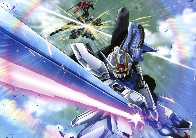 標榜21世紀第一部鋼彈的《機動戰士GUNDAM SEED》系列,題材上繼承鋼彈原作,風格上充滿新時代氛圍,更帥氣、更華麗,但浮誇的戰鬥表現,有時候會讓人覺得:哎啊,這是不是有點中二病發作啊?看看以下的作畫表現就能略窺一二。
