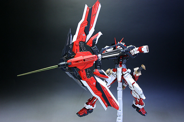 ▲ MG異端鋼彈紅色機改,修改了藍色機2L的戰術複合武裝背包,參考逆△異端鋼彈背部光輪推進翼的「△模式」、其他還有「V模式」、「飛行模式」與基本的「劍模式」等。佩刀有菊一文字、虎徹。