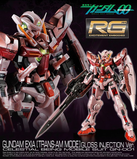 ▲ RG能天使鋼彈Trans-AM版本,Trans-AM是指短時間內將GN爐中的粒子全面釋放的一種技術,能將機體性能提高三倍,全身變成霞紅色,又稱「發爐模式」。