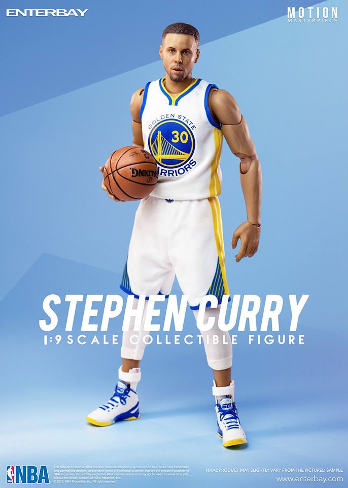 知名1/6 比例人偶品牌ENTERBAY 公司在推出了大鬍子詹姆士.哈登(James Harden)的作品之後,又將在旗下全新1/9 比例Motion Masterpiece NBA 系列推出back-to-back NBA MVP 浪花兄弟之咖哩小子「史蒂芬.柯瑞」(Stephen Curry)的1/9 比例人偶作品。