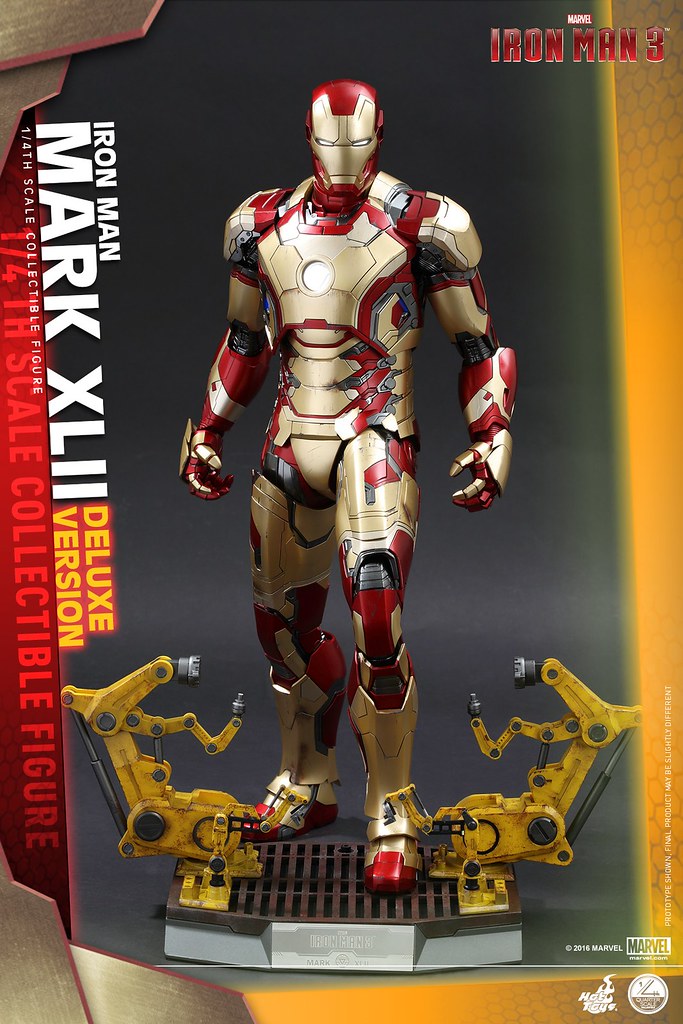 Hot Toys 公司在推出編號QS007 的1/4 比例鋼鐵人「馬克42」(Mark XLII)人偶作品之後,更加碼在推出了「豪華版」(Deluxe Version)的馬克42 人偶,豪華指數可以說是完全破錶啊!