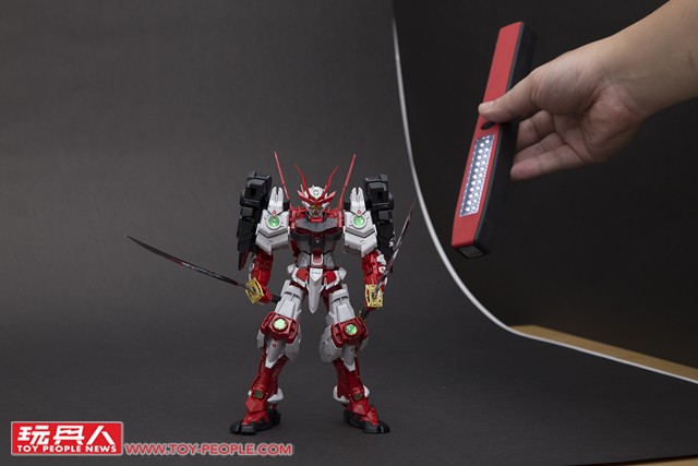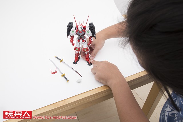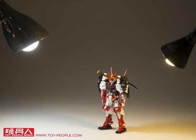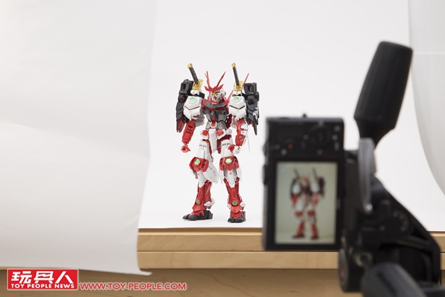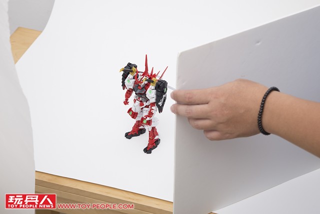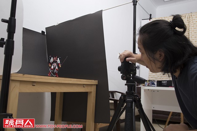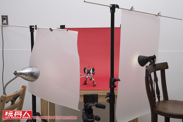 ▼ 確定好主角(鋼彈)的位置,燈光強度與角度之後,就能夠多方嘗試。 現在拍照不像過去要使用底片,每拍一張照片都是成本;數位相機讓各位玩具人能夠盡情地嘗試、拍攝到你滿意為止。
