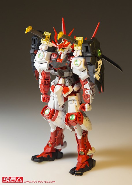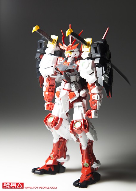▼ 掌握了這樣的基礎之後,就可以試著換不同顏色的配景紙增加氣氛;為了配合戰國異端頑駄無的配色,我嘗試選用紅色背景紙。 光是不同的配景紙,就能夠產生巨大的效果差異,專業的美術社有販售各式各樣質感、紋路的紙張,多多嘗試能夠獲得意想不到的效果喔!~