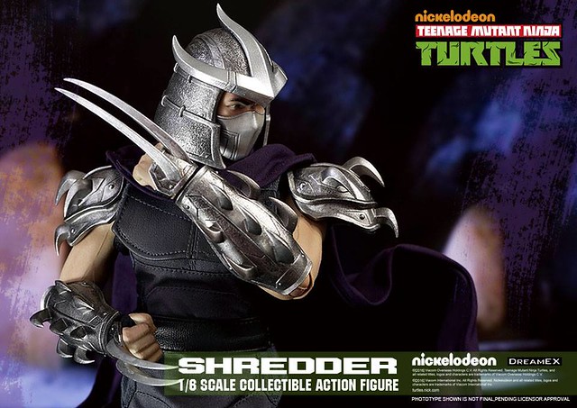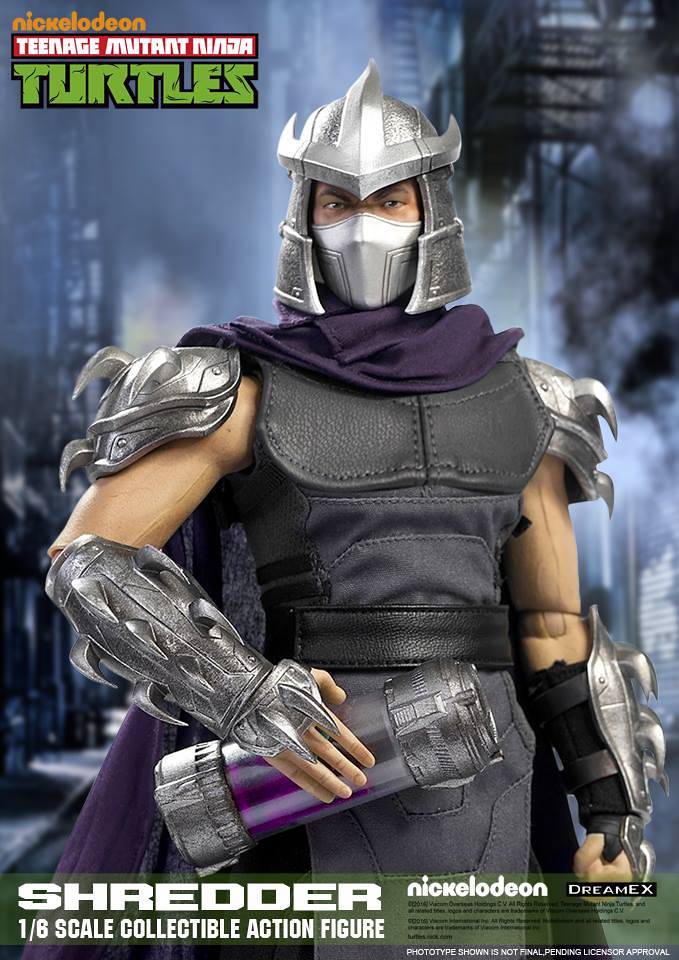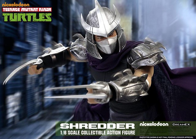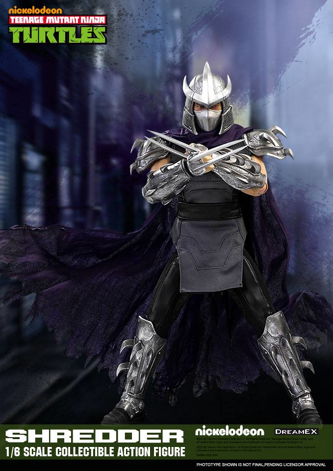 1/6 比例人偶新銳品牌DreamEX 公司繼在2015 年紐約動漫展釋出了四個忍者龜的原型作品以及公佈了「凱西.瓊斯」(Casey Jones)的1/6 比例人偶之後,最近又公佈了一款忍者龜迷都非常想要的角色啊,沒錯,就是超級大反派「許瑞德」(Shredder)的人偶作品。