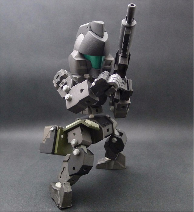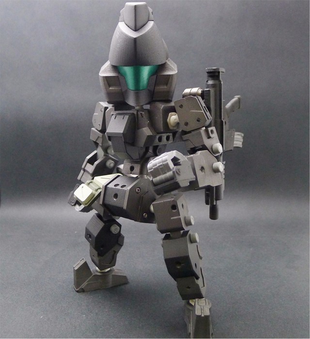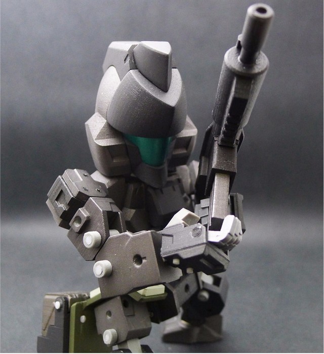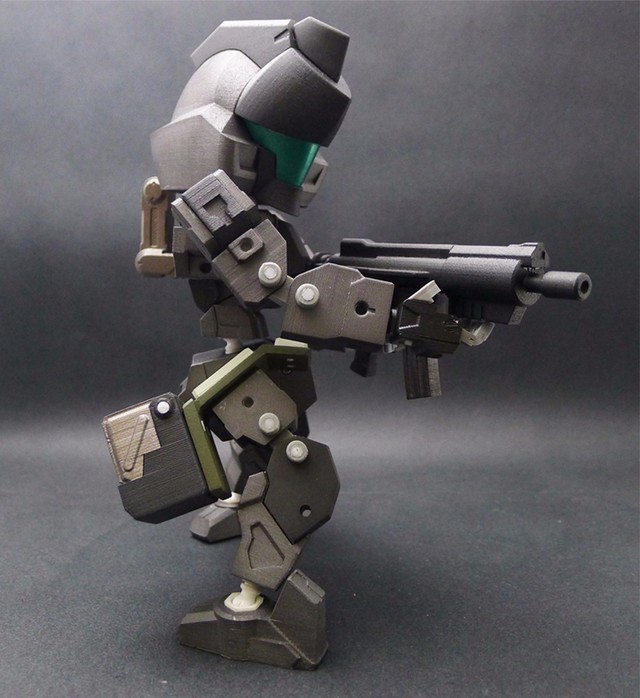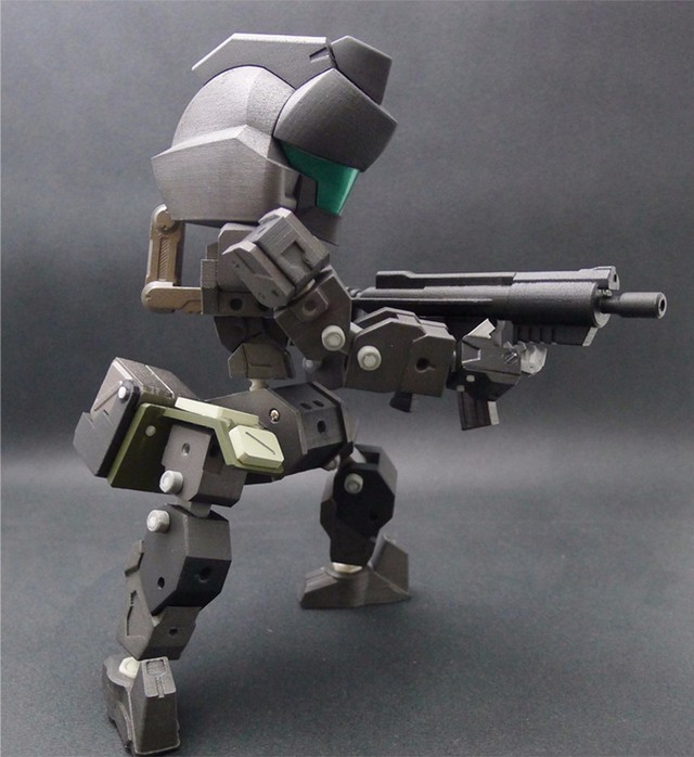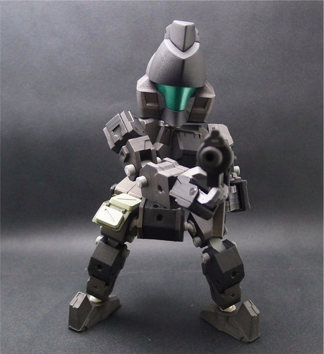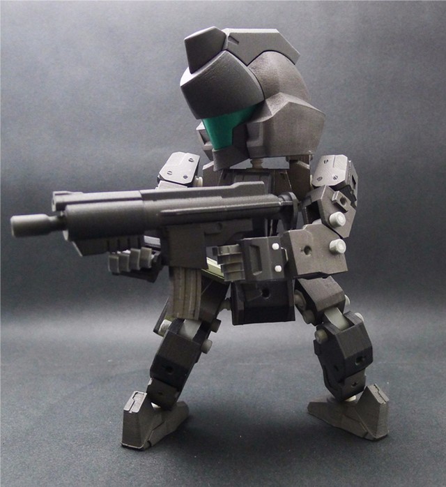 這款模型我採用了3D列印中的FDM技術製作,列印時間大約48小時左右,材料為PLA以及TPU。成形之後採用跟一般模型製作相同的上色步驟,先上500號底漆,再上色漆。整體顏色以GAIA 的黑鉛色為主體,搭配GAIA 221德軍灰、Mr color 77的亮綠銀 (面罩部分)、GAIA 213灰綠色、GAIA 215暗綠色以及GAIA 020 槍鐵色。