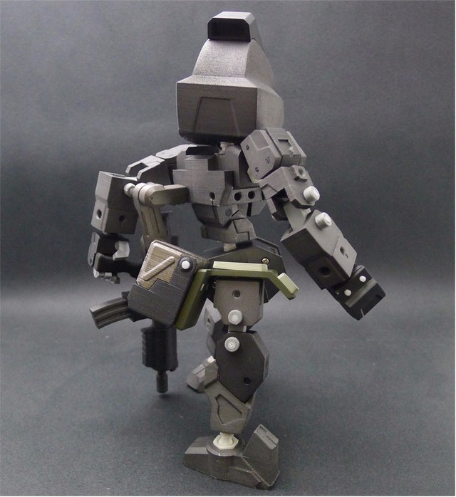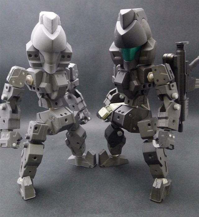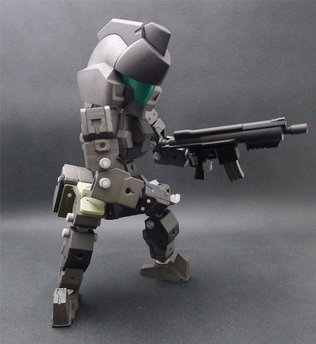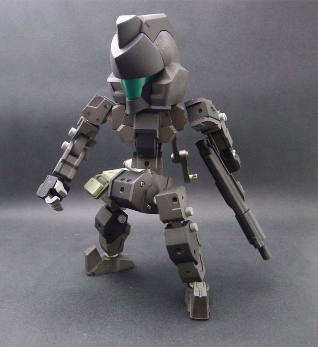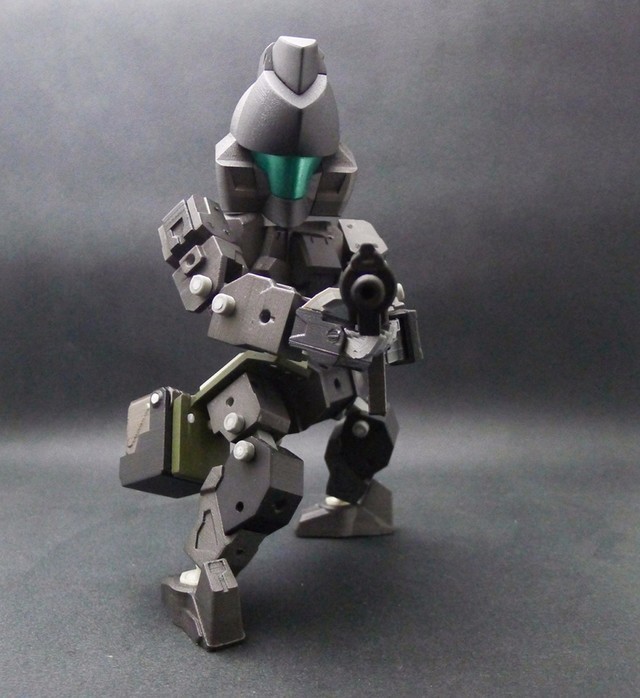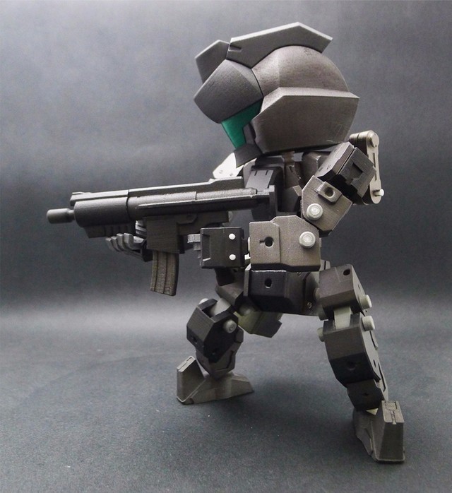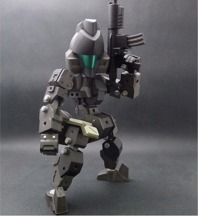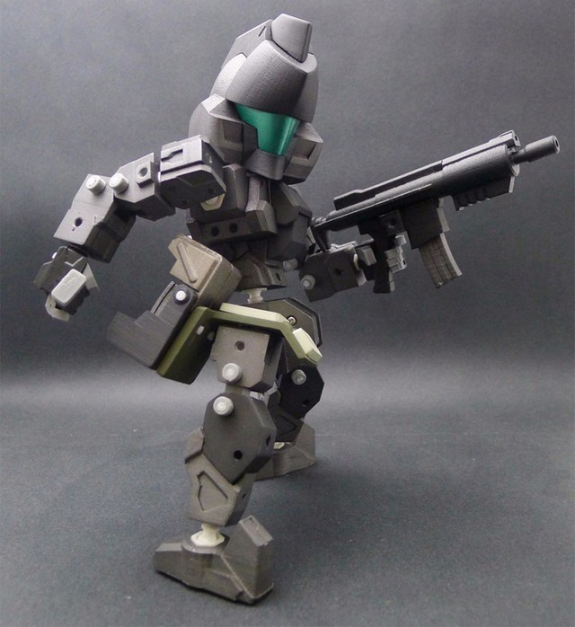 這款模型我採用了3D列印中的FDM技術製作,列印時間大約48小時左右,材料為PLA以及TPU。成形之後採用跟一般模型製作相同的上色步驟,先上500號底漆,再上色漆。整體顏色以GAIA 的黑鉛色為主體,搭配GAIA 221德軍灰、Mr color 77的亮綠銀 (面罩部分)、GAIA 213灰綠色、GAIA 215暗綠色以及GAIA 020 槍鐵色。