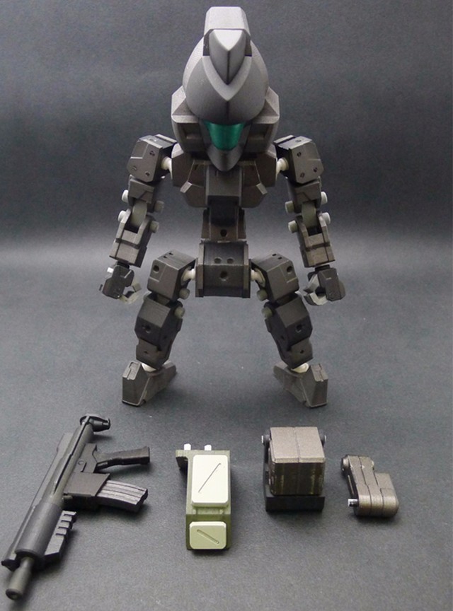 配件一覽,步槍、右腿裝甲、彈藥箱以及連接臂。