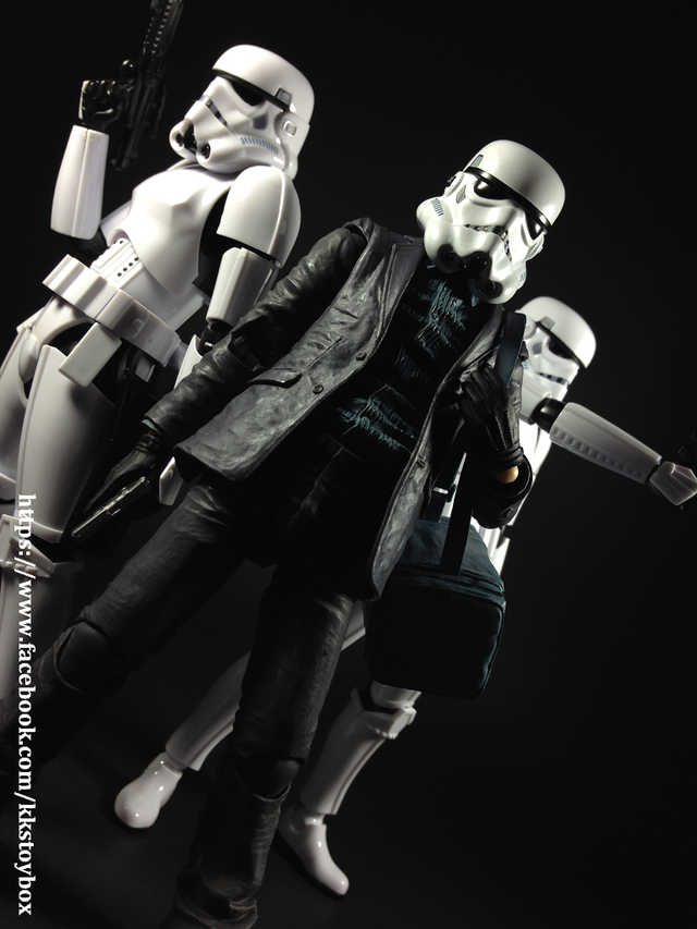 1. 造型細節依舊無可挑剔。襯衫、外套、長褲、甚至運動鞋上的皺褶、線條等非常仔細刻畫,完全不馬虎。硬要說塗裝上的缺點,只有膝蓋關節沒有刻上長褲的紋路。