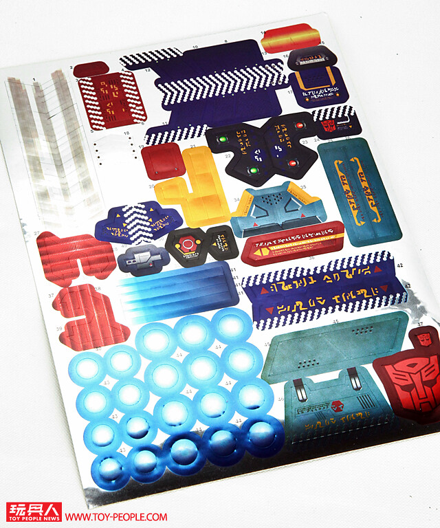 ▼ 小編黏貼的比較小心,大約花45鐘把貼紙貼完啦~ 接下來我們就來欣賞一下福特基地的完整造型吧。 貼紙由於是特殊規格的亮面塑膠貼紙,所以會有反光效果,比一般變形金剛的塗裝還漂亮、華麗很多,也更加增添了氣勢。