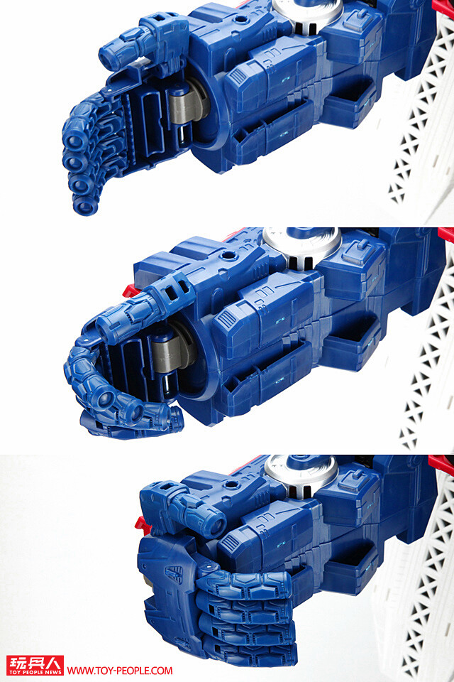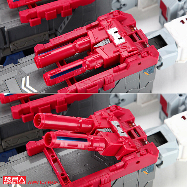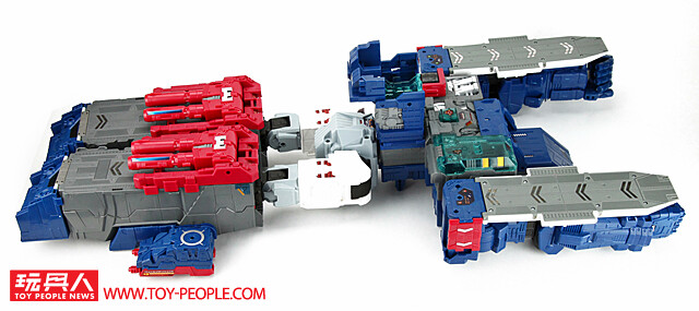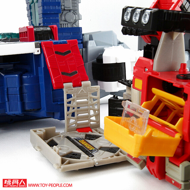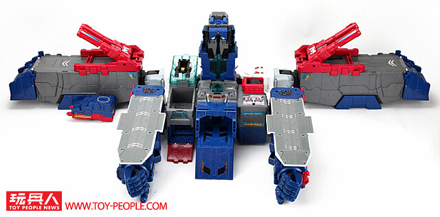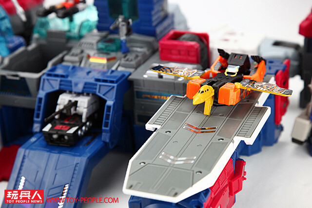 ▼ 戰艦的側邊設置有連接裝置,能夠與超能戰士柯博文、爆破者所變形的基地型態結合,變成一個更具規模、更加強力的基地。