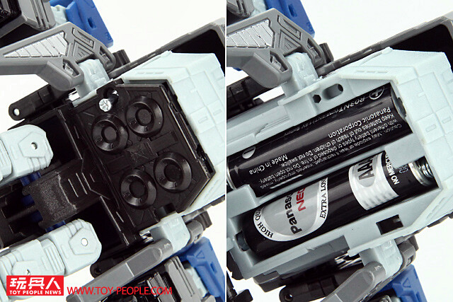 ▼ 福特基地的聲光效果都是由“賽羅伯斯”來啟動,所以背部打開以後,能夠裝電池。 這個電池室隱藏的很好,完全不會破壞外觀造型。