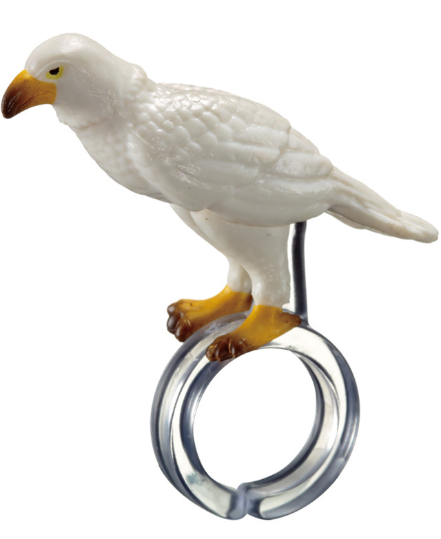 最近小編瘋狂的在追Netflix 製作的電視劇「馬可波羅」(Marco Polo),裡面蒙古人用來傳信用的就是超帥氣的老鷹啊!而這次EPOCH 公司所要推出「指上的猛禽類」轉蛋作品將會推出兩種造型(開翼、閉翼)、三種配色(白色、茶色、白黑色)共六種不同的款式;此外,在透明的塑膠指環部分都是可以拆卸的,讓各位玩具人能將這些猛禽們放在桌上或是與其他的玩具搭配擺放!