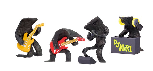 這次的「搖滾海苔」將會推出以樂隊成員的主唱、吉他手、貝斯和DJ等等四款不同姿勢的有趣海苔歐!以原本海苔的黑色款來表現,另外一款是以特殊金色的配色來呈現其更有「搖滾樂手」的風格,預計推出約有八種類的海苔角色可以收集,喜歡奇想創意轉蛋作品的玩具人可以參考一下歐!
