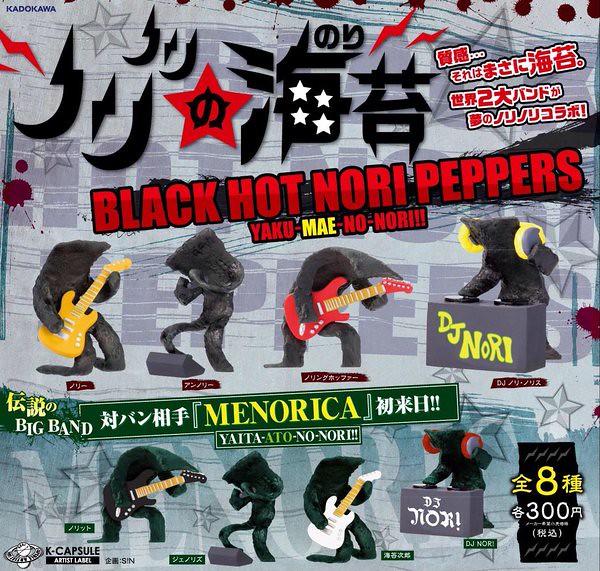 由角川KADOKAWA公司以「K-CAPSULE ARTIST LABEL」簡稱為「KCAL」商品系列,首波已經推出過了「顔面妄想系列」相當受到喜歡轉蛋、盒玩作品的玩具人歡迎,這次將再推出將「海苔擬人化」的特殊發想,「ノリ」有演唱節奏的解釋,剛好也是“紫菜(海苔)”的意思,所以直接將ノリノリの海苔以「搖滾海苔」來做為暫時翻譯名稱。