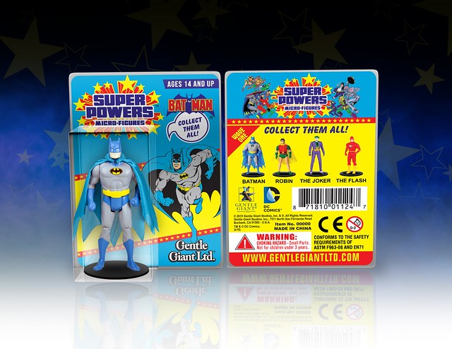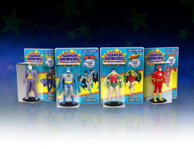 Gentle Giant 現在反向操作,將Kenner 於1984年所發行的DC Super Powers 系列吊卡人偶,利用3D雷射掃描技術,將這一系列的經典DC 超級英雄收藏人偶縮小2倍,並搭配最新的3D列印技術製作出忠於原始造型、又同時兼具小巧尺寸的DC Super Powers Micro Figure 系列。首波零售版推出了蝙蝠俠、羅賓、小丑與閃電俠四種款式,每款售價3.49美金。