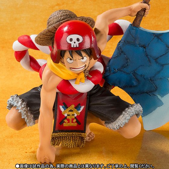 這次所發行的版本,是以《ONE PIECE FILM GOLD》片頭動畫登場的造型來設計,由於是以「GOLD」為主題,於是將主角魯夫的造型轉化為了日本童話故事「金太郎」的模樣,呈現出前所未見的特殊造型。這一款作品令人想起之前P.O.P 所發行的《超級歌舞伎Ⅱ:海賊王》魯夫,融合日本傳統元素與海賊王的世界觀,精彩的特殊造型相當值得入手珍藏!~ 各位海賊迷們千萬別錯過這款精彩作品!!!