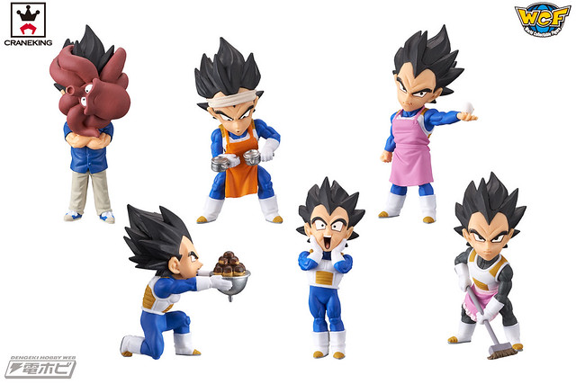 此次將劇中出現貝吉塔穿著圍裙做家事的有趣模樣,或者是吃到美味食物的驚訝逗趣表情等等,有別於戰鬥狀態的戰士「王子貝吉塔」實在是讓喜愛《七龍珠》系列動畫的粉絲們十分驚艷歐!注意看還可以發現貝吉塔身上還穿著戰鬥服外同時還添加上粉紅色或是橘色等等的圍裙,這麼多種不同配色的圍裙實在讓人整個對貝吉塔的戰鬥王子型象顛覆了啊!喜愛《七龍珠》系列動畫的玩具人千萬別錯過了。