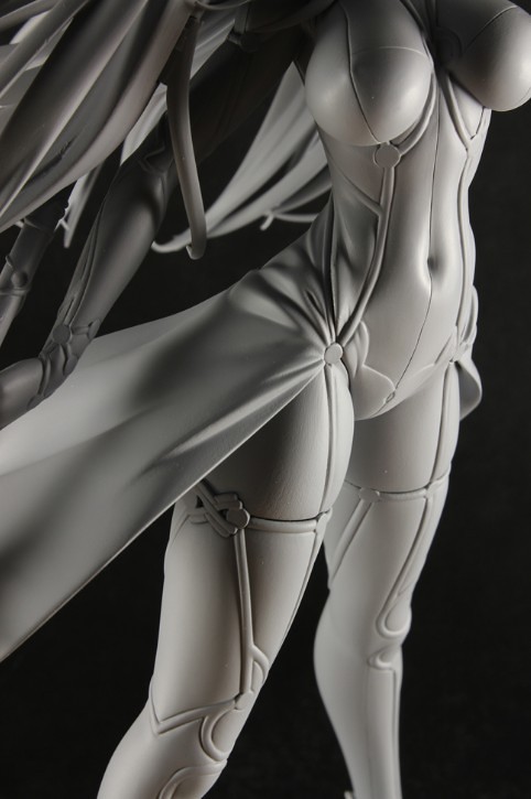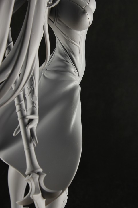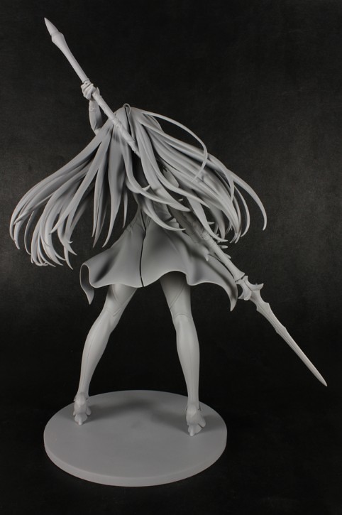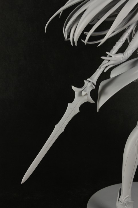 於《Fate/Grand Order》中登場的英靈「Lancer/斯卡哈」擁有一頭迷人的棕色長髮和姣好身材,集結強大和美麗於一身的天才,不難想像她有著高人氣的原因。她的特色是那一襲神秘又性感的黑色緊身衣,以及紅如鮮血的「貫穿死翔之槍(Gae Bolg alternative)」。從PLUM釋出的圖片來看,這款FIGURE作品在人物體態及服裝上的雕琢都非常出色,在未上色的狀態便能感受到人體與緊身衣布料之間的層次。「貫穿死翔之槍」的長度適宜,槍柄上如藤蔓纏繞的紋路,每條的寬度相當,作工十分精細。而最重要的姿勢我個人也是相當喜歡,這種持槍姿勢雖然樸素,但能感受到角色身為強者的餘裕,也能展現出姣好身材的體態美。整體來說是很優秀的作品,非常期待完成品的姿態!
