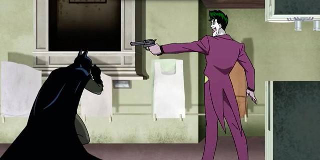 上面那段講出大家擔心藝術性的問題,不過整體來說這部動畫電影是成功的,因為就像我說的,雖然無法呈現漫畫的特殊字體藝術,但卻用漫畫沒有的配音補足這點。至於大家另一個要注意的點,就是這故事不是走娛樂路線,他算是探討蝙蝠俠跟小丑本質的哲學性故事,所以不要認為這是爽片。
