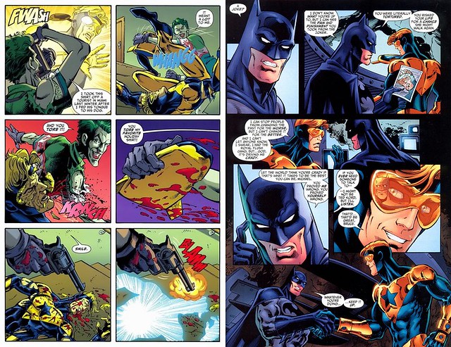 除了芭芭拉變成Oracle之外,也有兩篇比較著名的正史故事透過致命玩笑為主題做延伸。首先是金色先鋒的故事No Jokes,金色先鋒原本是從25世紀高譚市來到現今時代的英雄,他只是想出名而已,因此常常被當作笑話看待。