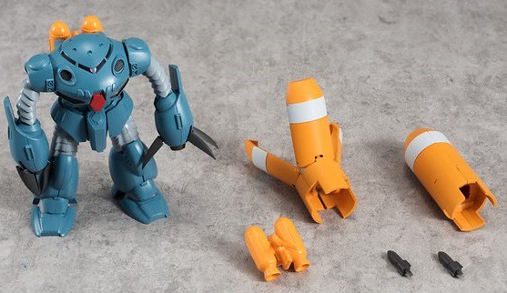 這次機體的手臂前端爪子設計有可動關節,可以呈現出動畫裡面爪子張開和合併的模樣,附有的「可選式設備」オプション装備與"選裝式噴射背包"配件都可以和「通用元素」系列的高戰蟹(ハイゴック)對應來使用,提供給喜愛《機動戰士鋼彈》系列作的玩具人參考。
