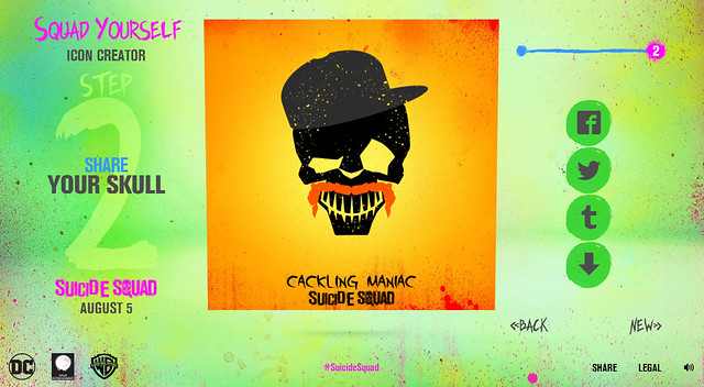 1. 到自殺突擊隊製作惡棍徽章的“Squad Yourself” 活動網站(squadyourself.suicidesquad.com/),製作一個屬於你的超猛惡棍徽章以及超壞名稱。完成之後將圖片下載下來。