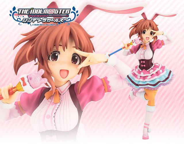 這次推出的「安部菜菜 -童話變身!-」以《偶像大師 灰姑娘女孩》動畫版第二季中登場的舞台服裝為基礎,調整了更多動畫中消失的細節加以重現。這套充滿了夢幻風格的服裝由粉色系構成,棕色的馬甲令人聯想到甜美的巧克力,蓬鬆搖曳的蛋糕裙上印有白色的可愛的紅蘿蔔圖案,充滿了少女情懷。即使年齡已過花信年華,穿上這套衣服依舊能散發年輕光彩!愛稱「小兔兔」的安部菜菜果然很喜歡這樣的服裝風格,以兔耳魔法少女的姿態登場!
