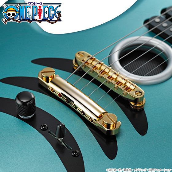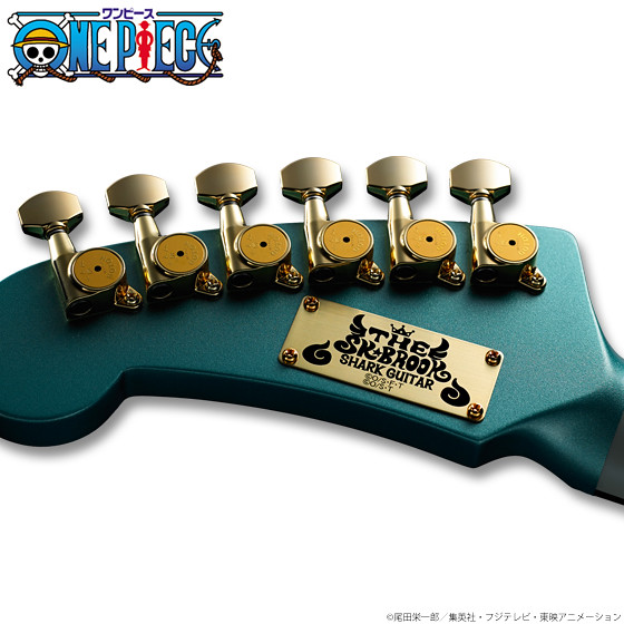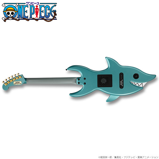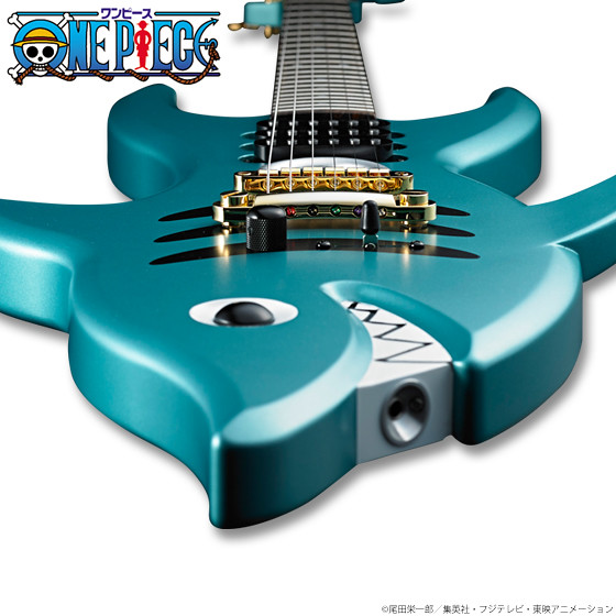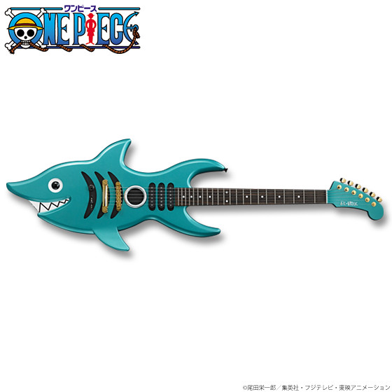 這次由島村樂器株式会社與人氣漫畫「海賊王 ONE PIECE」合作將推出在故事裡面擔任音樂家又是劍士的"布魯克",他所使用有著特殊鯊魚造型的吉他,此次將推出實際1:1尺寸可以真正彈奏的電吉他,製作材質上使用高品質的美國椴木(しクセのないサウンドと),並且全部以日式工藝製作 MADE IN JAPAN,預計將於魂線上商店在2016年7月20日起開始接受訂購,有玩電吉他或是喜愛《海賊王》的玩具人可以參考一下歐!