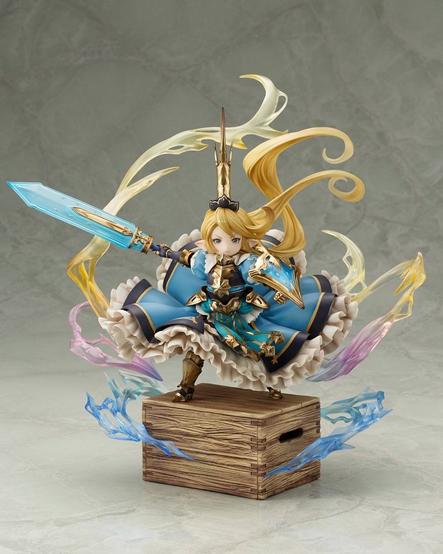 「[嬌小的聖騎士] 夏洛特」將遊戲中「最終解放」後的卡面插畫進行立體化製作,服裝上選用了接近原畫中的藍、黑、金色,巧妙地達到即使光影變化也不會感到突兀的平衡,光是藍色就有數種表現方式,更提昇了立體感呢!而澎澎裙襬也是一大看點,不僅表面的荷葉邊令人炫目,裙下的細節也不馬虎,連縫線都做出來了呢,大大增加整體的華麗度!底座是仿真度極高的本體!...我是說木箱,精緻的木紋塗裝跟真的一樣。少了這個木箱,整組模型就霸氣不起來啦!此外身旁還圍繞著漸層色塗裝的透明零件,產生了充滿威嚴的正義氣場,讓人越看越心動了!