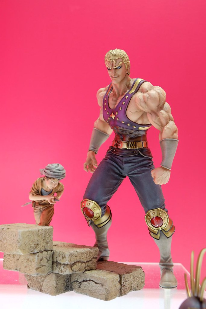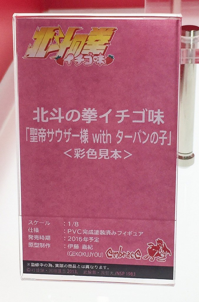 這次由日廠embrace(エンブレイスジャパン)把《北斗神拳 草莓口味》劇中經典動畫短片的內容,其中一段敘述聖帝"沙烏薩"要走上階梯前往和拳四郎決鬥,途中不斷出現「戴著頭巾的小子」(ターバンの子)一直拿著小刀刺他大腿的荒繆情節,這段逗趣的畫面以上色完成品的方式再現,附有超多款不同表情沙烏薩的頭雕配件可以替換,真是十足惡搞精神的立體作品啊!對《北斗神拳 草莓口味》有興趣的玩具人可以參考一下歐!