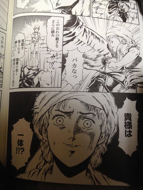 ▼ 原作漫畫當中也是有個戴著頭巾的小子拿尖銳的武器刺沙烏薩。
