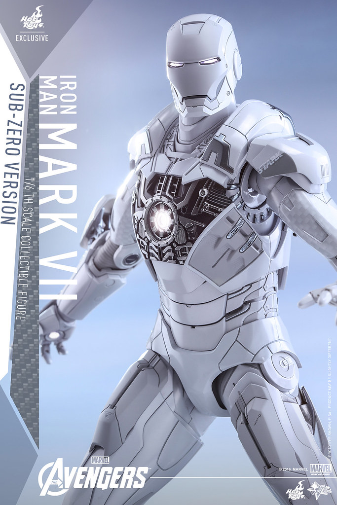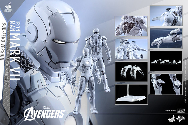 Hot Toys 公司繼去年推出了電影期間限定的「復仇者聯盟」的鋼鐵人「馬克7 匿蹤版」(Mark VII Stealth Mode Version)作品之後,又將要一款推出全新鋼鐵人「馬克7 極地版」(Mark VII Sub-Zero Ver.)的1/6 比例人偶作品。相信許多有收藏鋼鐵人系列作品的玩具人看到這個消息之後應該都超級興奮的吧?!