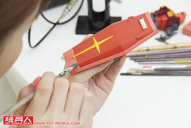 ▼ 記得喬老師說碰到舊化時就用C4,簡單輕鬆!XD~~ 當然不是啦~~是要用這台大衛360電動雕刻機,慢慢細刻,模擬雕出鋼彈戰損的傷痕。