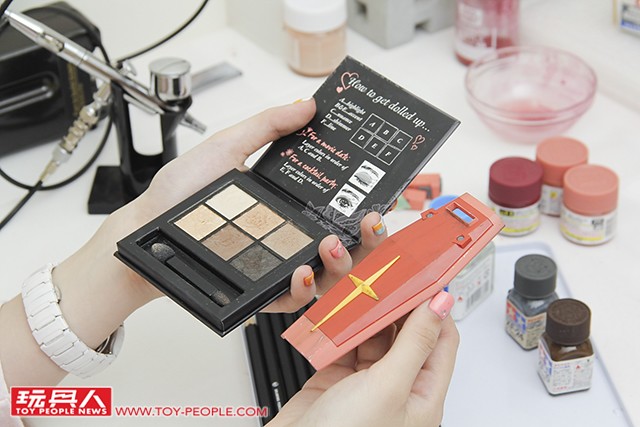 ▼ 如果買不到模型專用的舊化粉彩怎麼辦,沒關係!女生一定都會有的眼影也可以拿來當粉彩用喔~