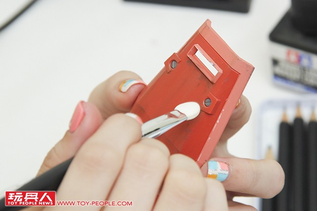 ▼ 用乾燥的筆刷在零件上戳啊戳~就可以形成細微的刮傷:D
