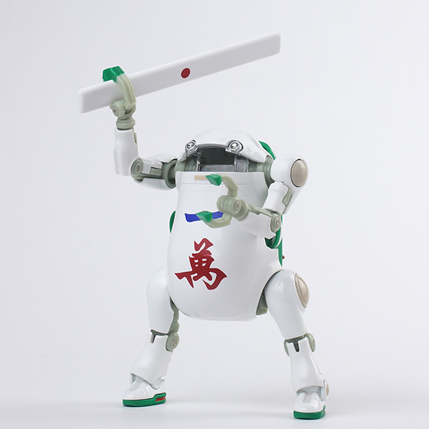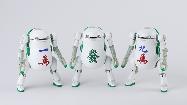 日千值練玩具公司相當受歡迎的「35機動機器人WeGo」可動系列,預計在這次"ACGHK 2016"展覽推出特別的「麻將配色」麻雀(A/B/C 套裝)約有三組九種款式的35機動機器人,顧名思義就是把「麻將」上的圖案加諸在機器人的上面,顏色當然也是經典的白綠麻將塗裝,A套裝是有「一筒」、「紅中」與「九筒」;B套裝是有「一萬」、「發財」、「九萬」;C套裝則是有「一索」、「白板」和「九索」等等的麻將圖案。