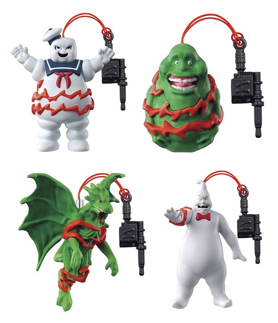 這次的人物角色的手機塞吊飾的「手機塞」還特別設計成劇中"抓鬼器"(捕獲器)的模樣歐!將收錄有戴著紅色領結的羅文(ROWAN/ローワン)、討喜鬼怪總是流著綠色黏液的史萊姆(スライマー),當然還有劇中所出現超巨型的魔王「棉花糖寶寶」マシュマロマン等等四種類的鬼怪角色,喜愛《魔鬼剋星》的玩具人千萬別錯過了歐!