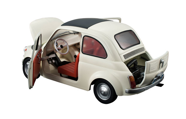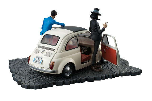 日廠MegaHouse(メガハウス)玩具公司以動畫《魯邦三世》為題材,「魯邦畫廊系列」ルパン・ザ・ギャラリー來推出劇中主要角色「魯邦」的愛車『飛雅特500EV』FIAT500,特別也以畫冊的聖馬利諾(画策のサンマリノ) 特殊的名字作為商品名稱,在故事當中陪伴魯邦一夥出生入死的「菲亞特」,這次立體車子的作品並且使用複合材質來製作,像是車本體是較硬的ABS材質、底盤是合金壓鑄材質,更增添手掌上把玩的重量感。