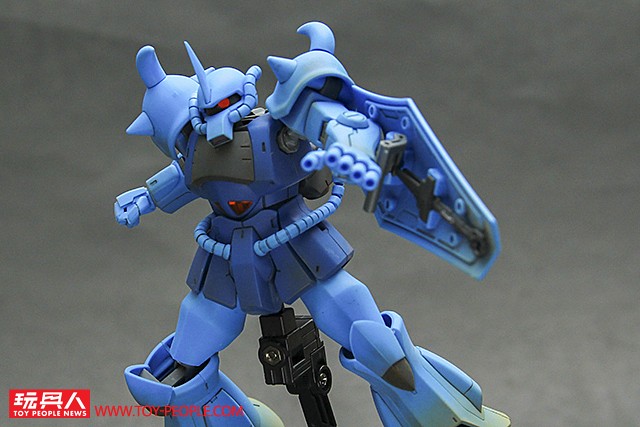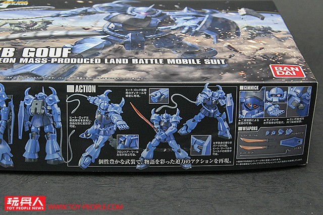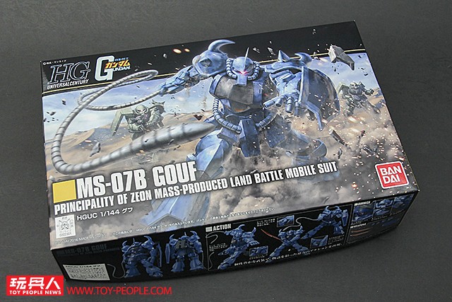 ▼ 說到蘭巴‧拉爾,就不能不提到他的座機MS-07B古夫,古夫是以薩克II為基礎,修改設計,以近身內搏戰為主的機體,在泛用性上並不如薩克II來的優異,主要特徵在電熱鞭的武裝,用來重創敵軍的電子系統,在戰術的使用比不上後期的德姆。HGUC第9號古夫,於2000年4月推出,頗有歷史了。