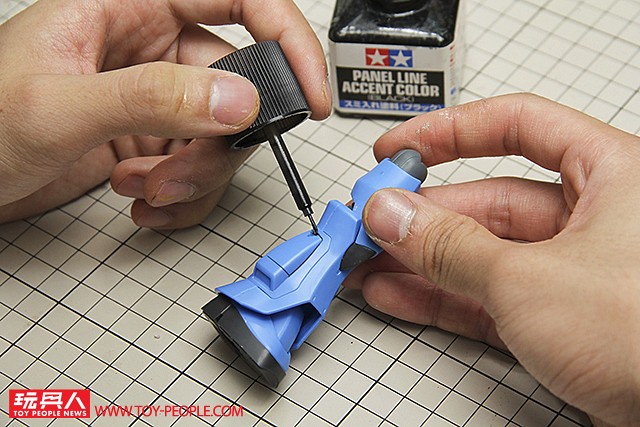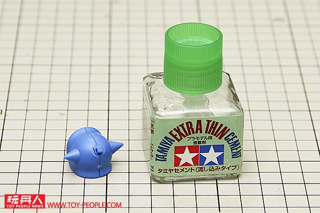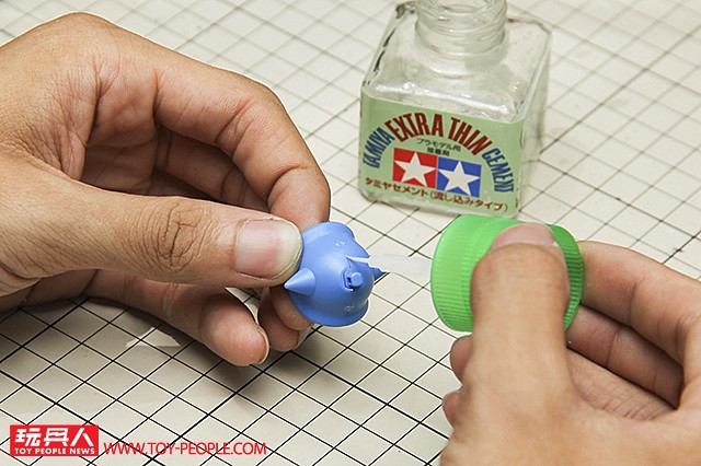 ▼ 我們使用田宮的高流動性模型膠水,我們俗稱「綠蓋」,將零件接合處保留一條細縫,將膠水流入縫隙中。