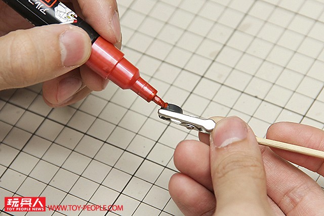 ▼ 在眼睛的部分,使用鋼彈麥克筆的金屬紅上色。