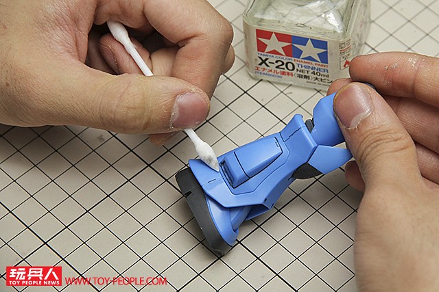 ▼ 使用棉花棒沾取X20後將多餘的部位擦乾淨。